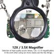1.HD Lens 🔍:This assistant welding table has a high quality optical glass lens with 3.5X and 12X magnification, which makes the magnified field of view clearer, and will not get dizzy in long-term use. Fully consider the needs of amateurs and welding electricians, allowing you to work on small parts with precise refinement and provide clear images without distortion or blurring!