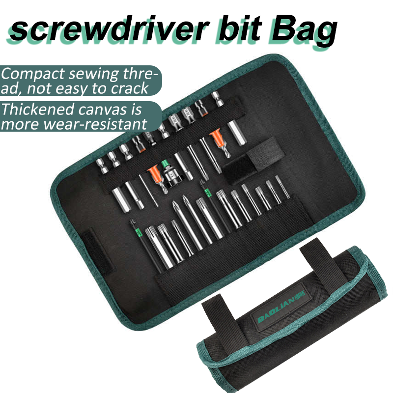 Multi-function Tool Roll Up Bag Wear Resistant Canvas Repair Bag for Drill Bit Screwdriver Bit Electrician Tools Man Storage Bag