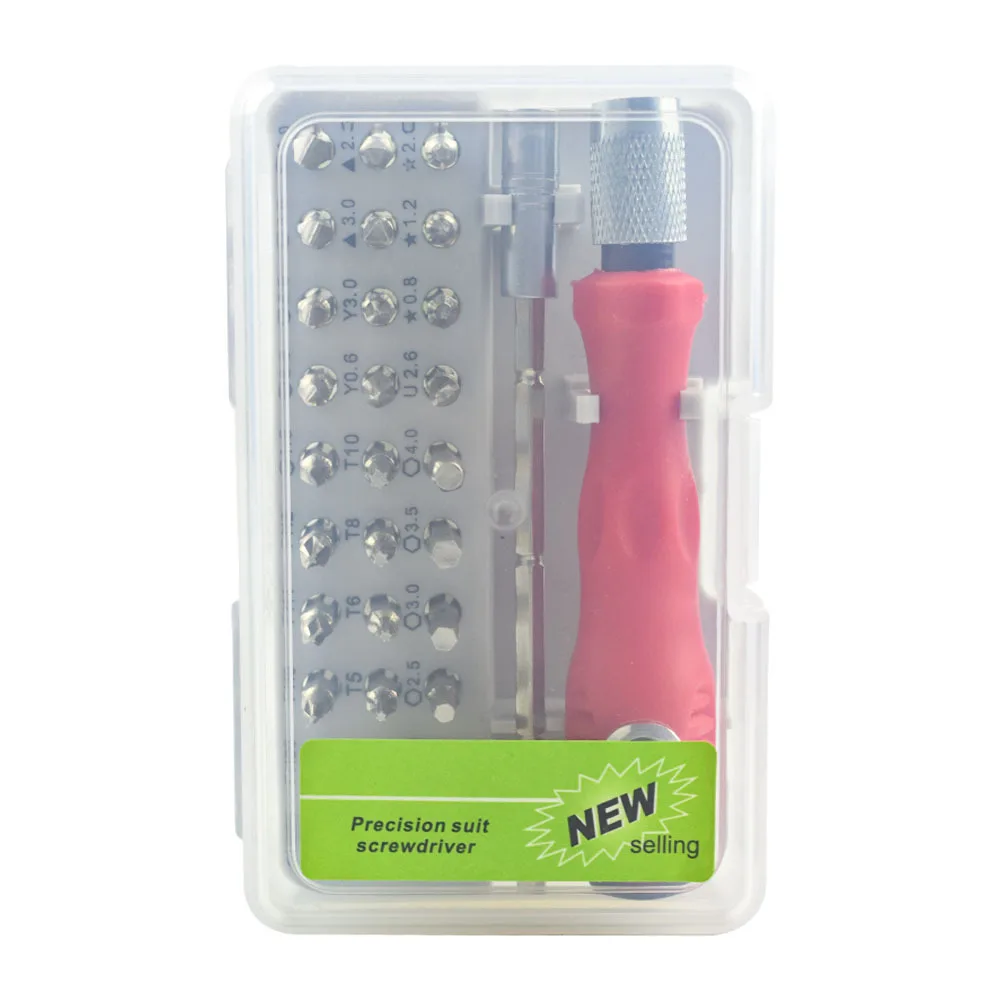 Multi functional 32 piece magnetic precision screwdriver head tool set suitable for installation and maintenance of clocks and m