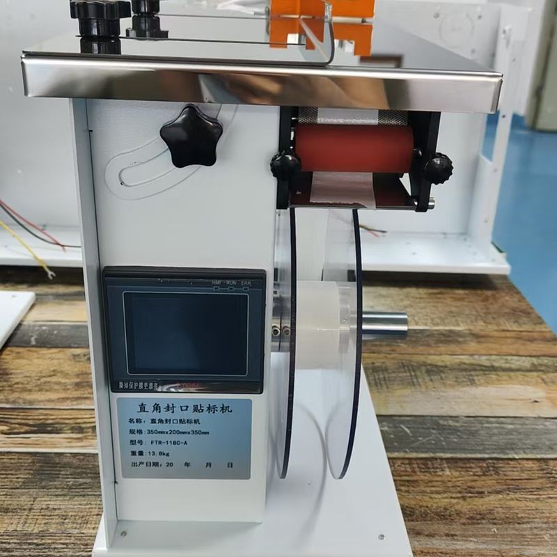 Multi functional right angle labeling machine, dedicated to 90 degree angle labeling, to achieve sealing, anti-counterfeiting, and anti disassembly functions;