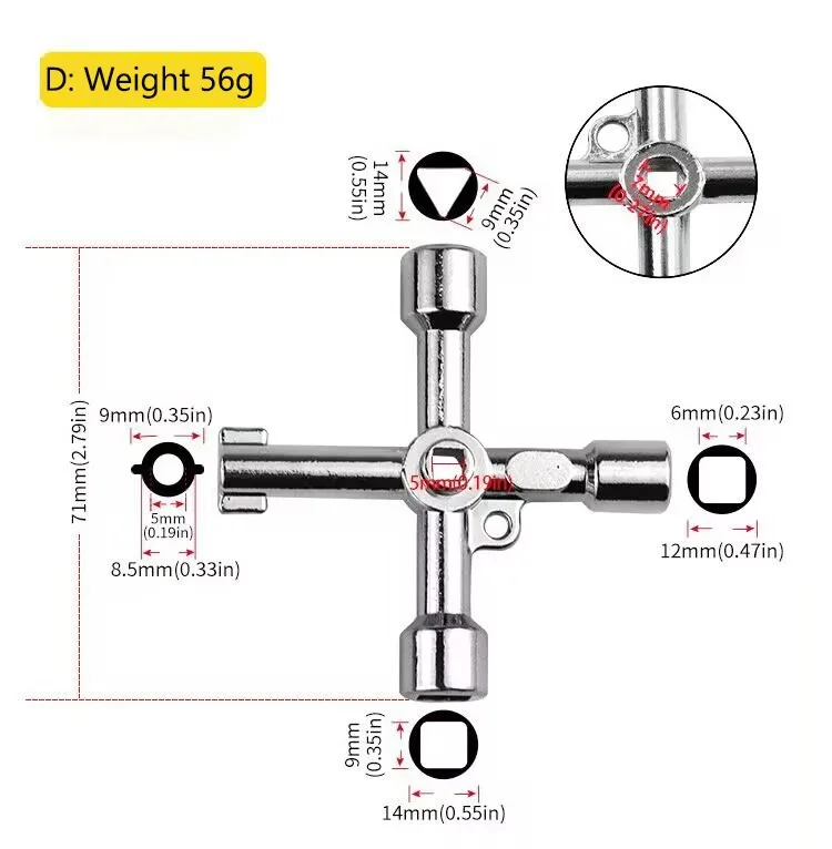 Multi Functional Elevator Key Wrench Elevator Water Meter Valve Multi Purpose Triangular Wrench Portable Hand Tools
