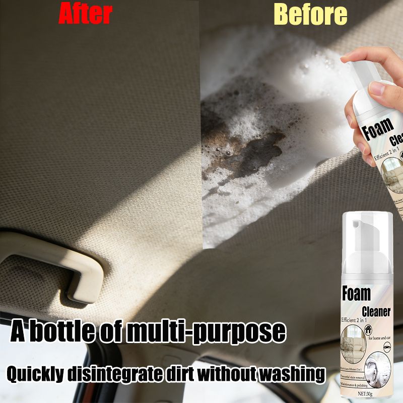 El limpiador multiusos para interiores de automóviles 2 en 1 es un spray de limpieza profunda que no daña la tapicería. Puede limpiar techos de tela, asientos de cuero, molduras de tableros de madera, alfombras, plásticos, gamuza, cromo, caucho, parabrisas, mamparas y más.