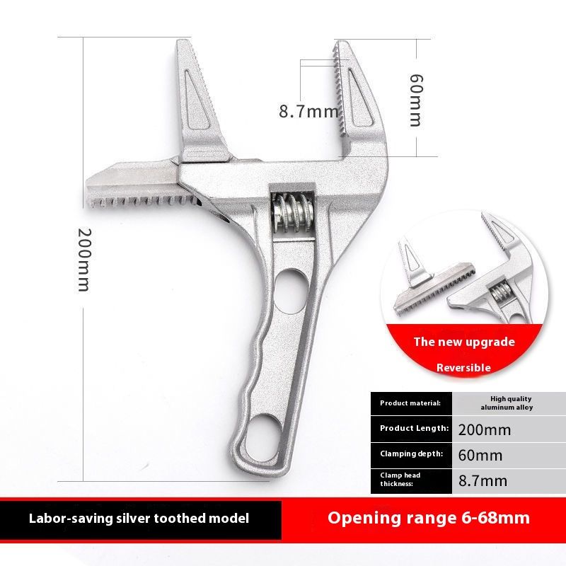 Multi Functional Portable Large Opening Short Handle Adjustable Wrench Labor Saving Toothed Silver Default Item Default Item