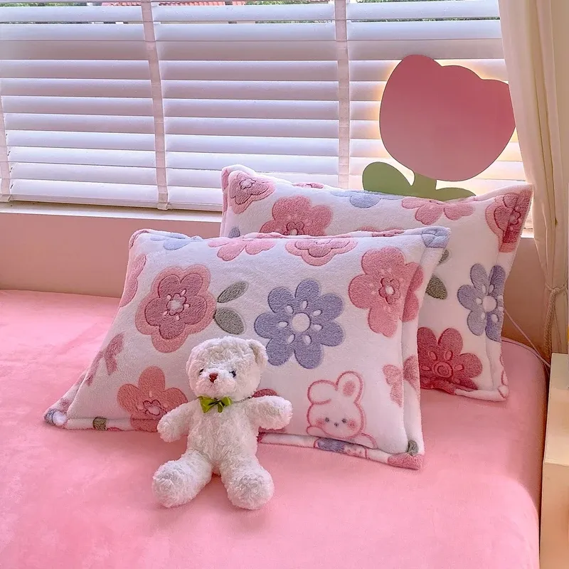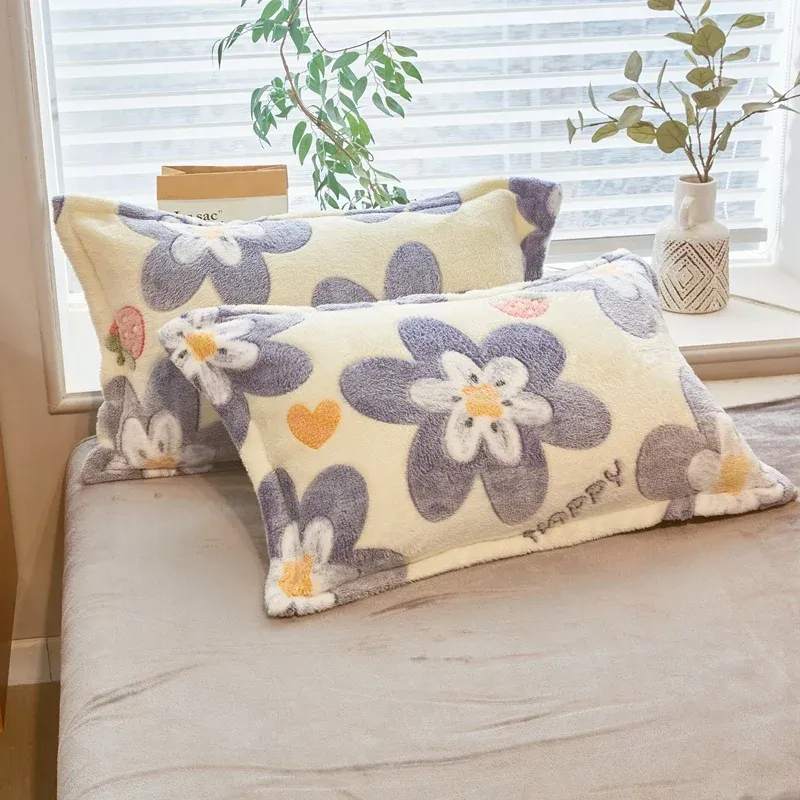 Multi-gauge Cartoon Printed Plush Pillowcase, Rectangular Sleeping Pillowcase, Warm Soft Flannel Pillowcase, Home Decor, Winter