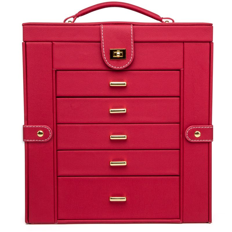 Multi-Layer Large Capacity Hand Jewelry Earrings Earrings Watch Storage Box Red