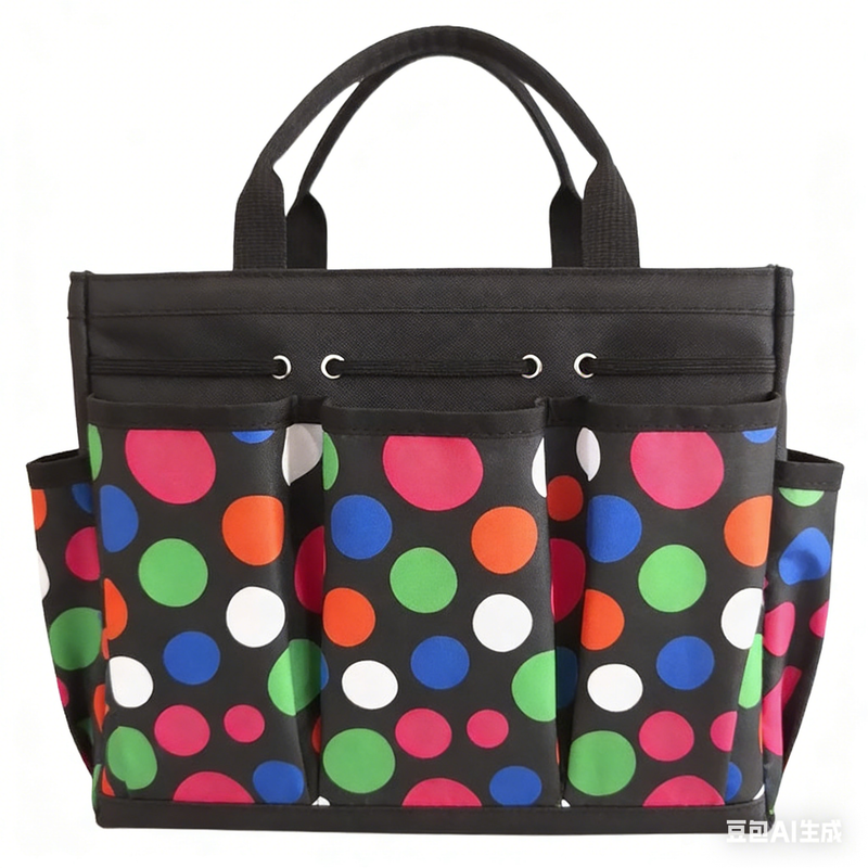 This versatile tool tote bag is the perfect storage solution for both daily and outdoor use. It comes in three stylish designs: classic polka dots, delicate feather prints, and elegant floral patterns, striking an ideal balance between practical functionality and aesthetic appeal.