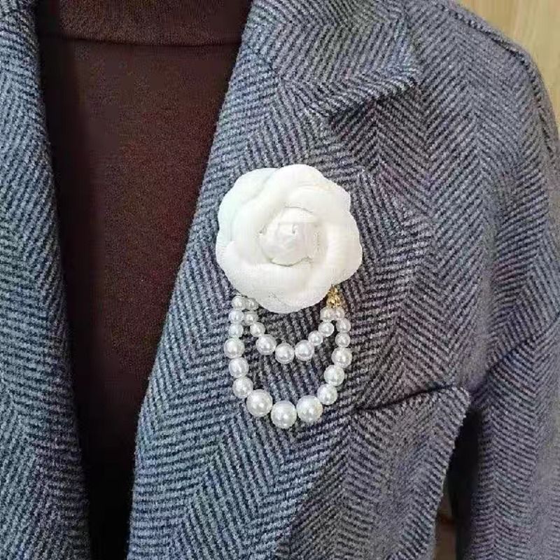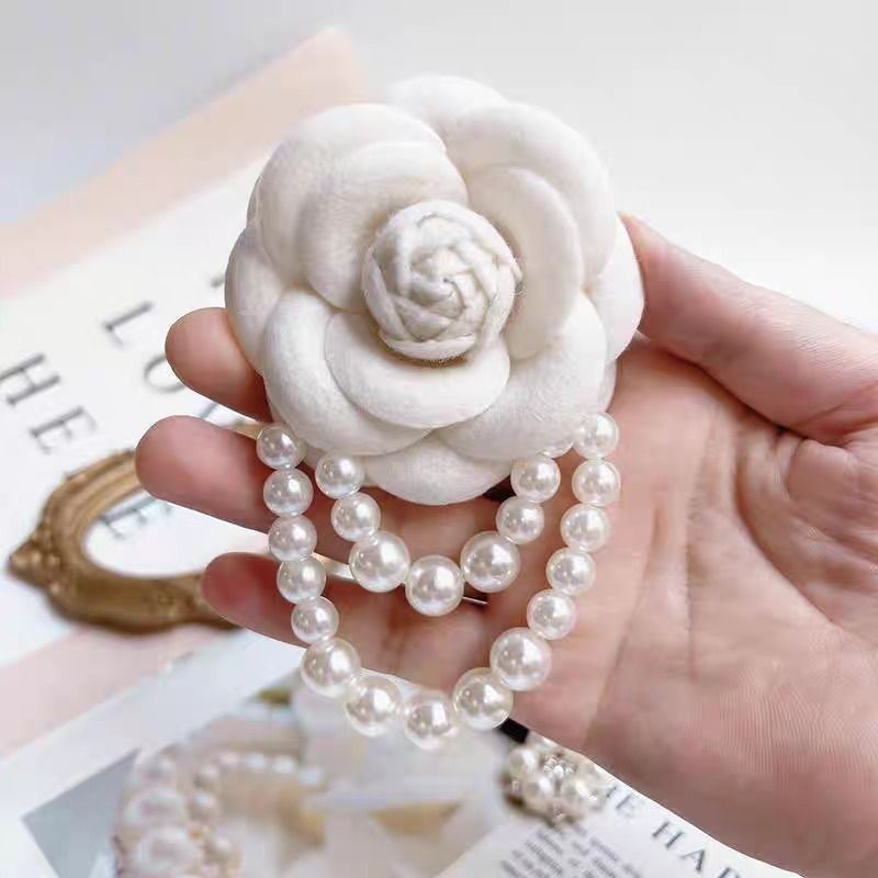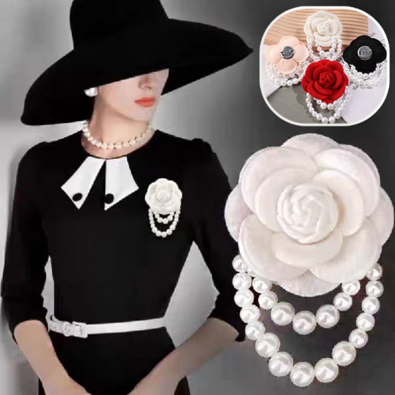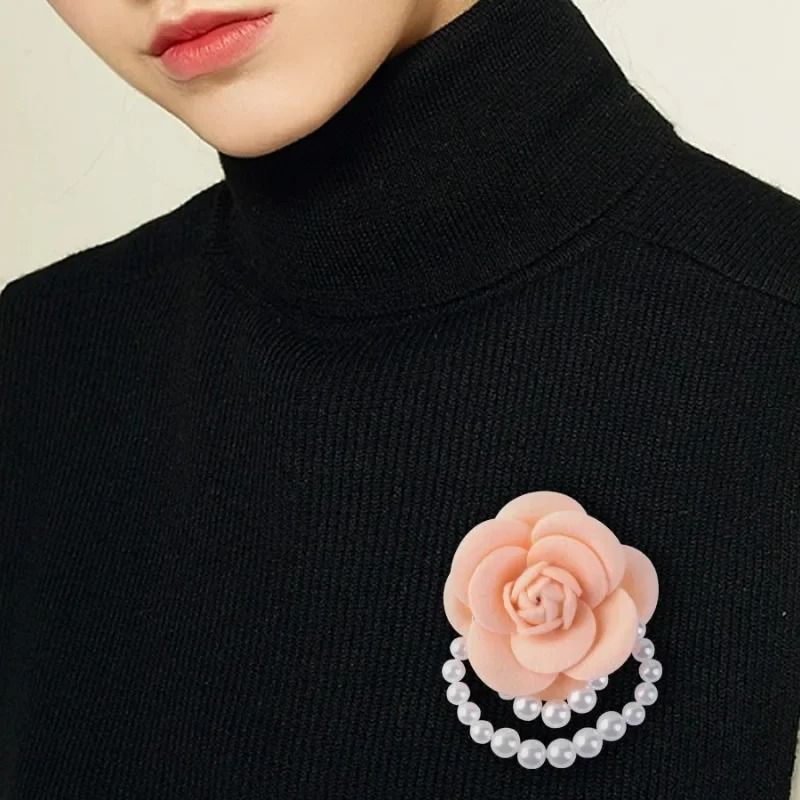 Multicolor Camellia Brooch Women Retro White Black Red Pink Wool Scarf Buckle Girls Pearl Brooches Elegant Jewelry Accessories