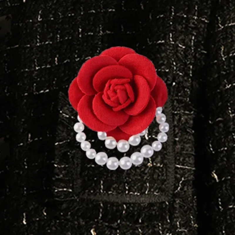Multicolor Camellia Brooch Women Retro White Black Red Pink Wool Scarf Buckle Girls Pearl Brooches Elegant Jewelry Accessories