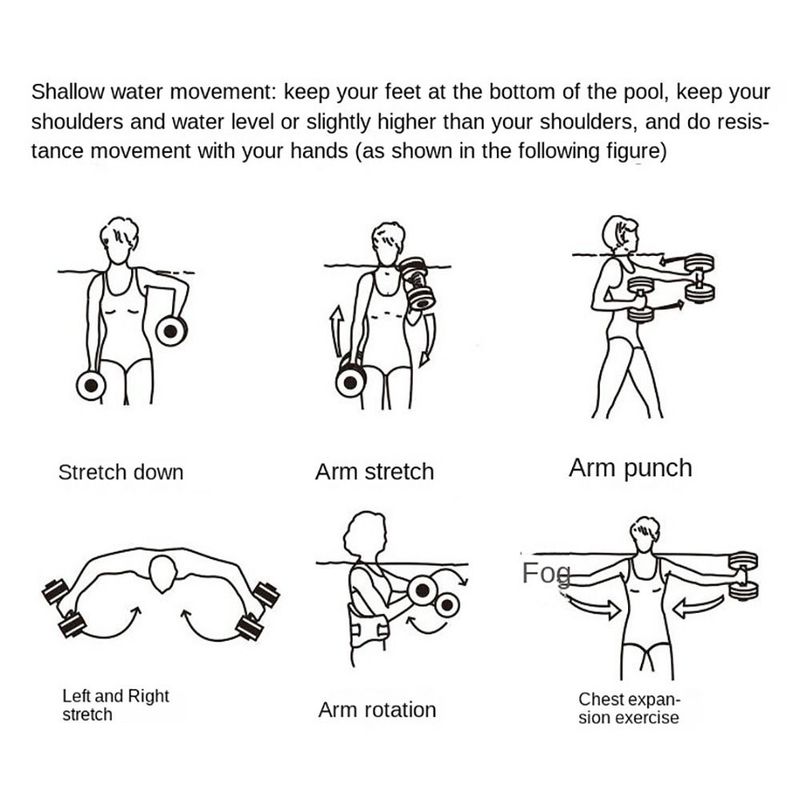 2. Foam water exercise dumbbells: Fun accessories for water aerobics or general pool workouts. This water dumbbell is the perfect addition to your water aerobics workout. The resistance of the dumbbells will provide a well-rounded workout for your upper body, lower back and beyond.