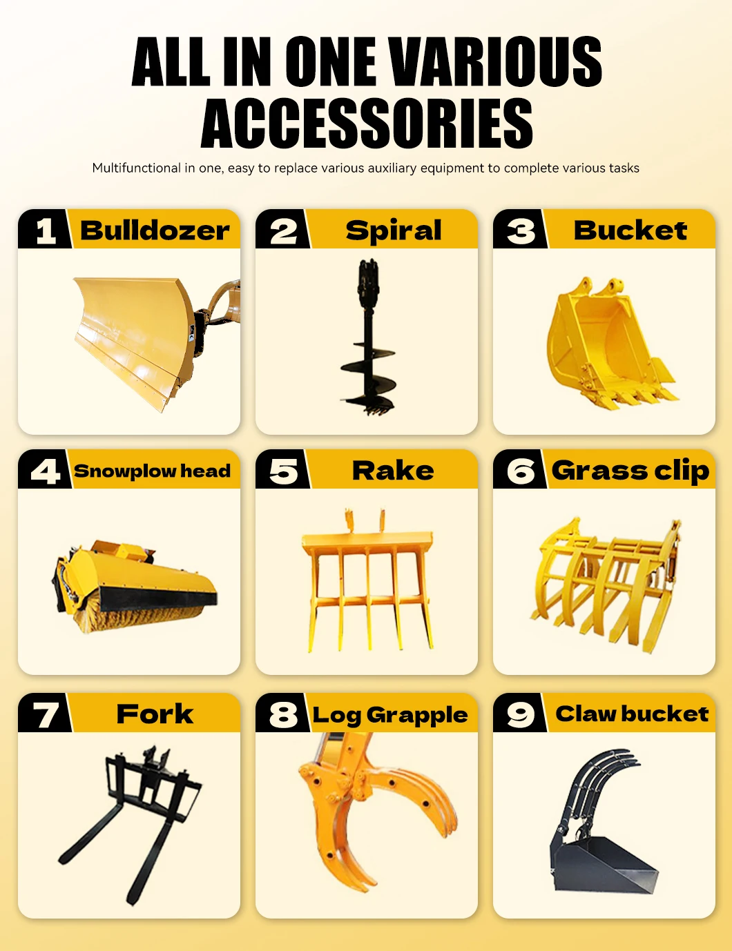 Multifunctional Operations: By quickly changing the attachments (completed within a few minutes), the following tasks can be performed: