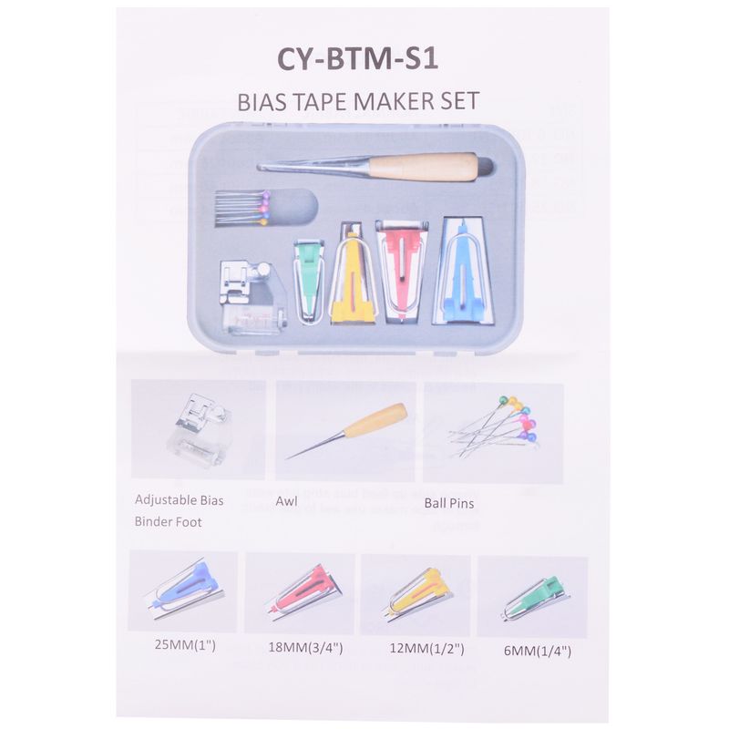 Freely adjust the cloth presser foot, the belt is 6MM, 12MM, 18MM, 25MM each, 1 awl, 10 beads,