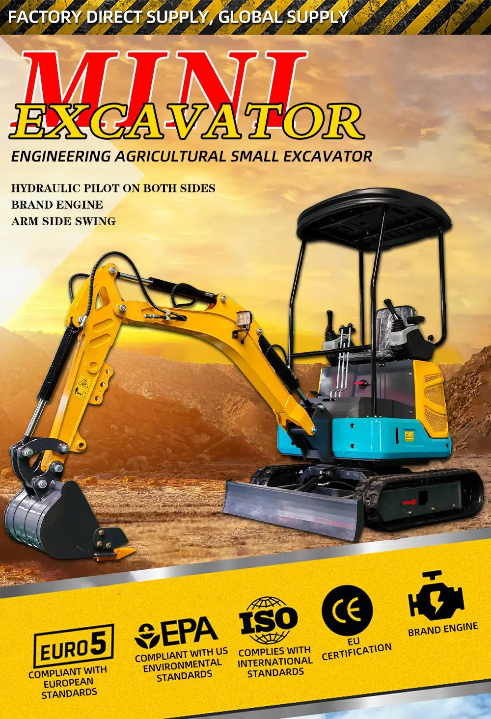 Multifunctional Excavator For Agricultural Construction Digging Loading Mini Excavator With Attachments Customized Free Shipping