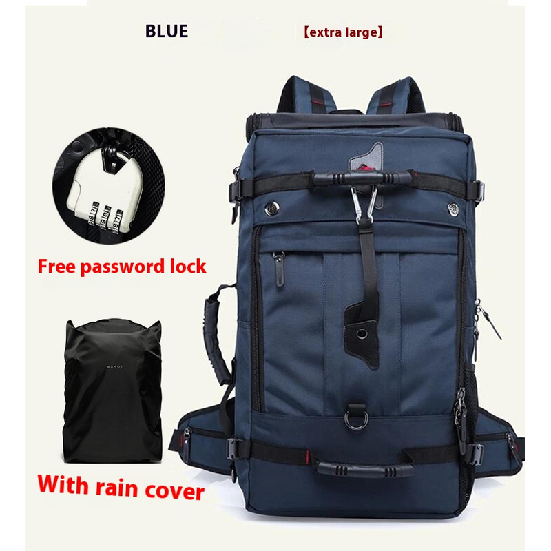 Multifunctional leisure large capacity travel bag Black 50L with rain cover