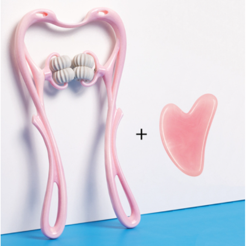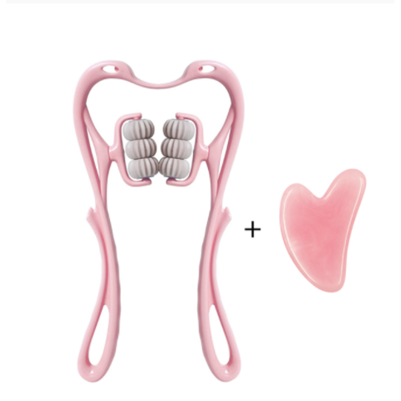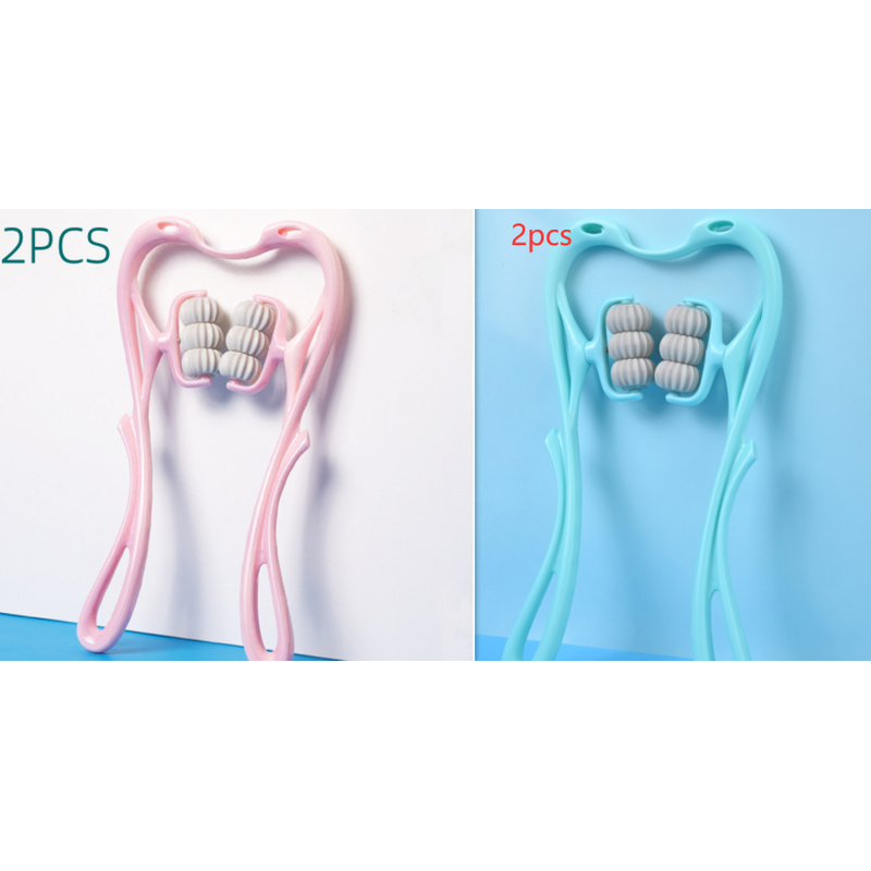 Multifunctional Manual Six-wheel Neck Massager Massage Relieve Roller Massage Tool Pink 2PCS