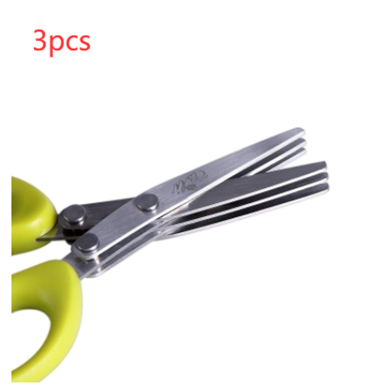 Multifunctional Multi-layer Green Onion Scissors Stainless Steel Onion Cutting Knife Herb Seaweed Spice Scissors Kitchen Scissor Kitchen Gadgets Green 3Layers