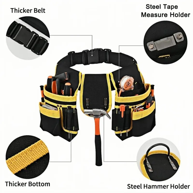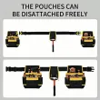 Adjustable and Detachable: The tool belt features extra-long adjustable straps and quick-release buckles to fit waist sizes 31" - 48". The 3 independent pockets can be freely detached according to the number of tools you have. When you have fewer tools, you can detach one of them. It will not be burdensome if fewer tools