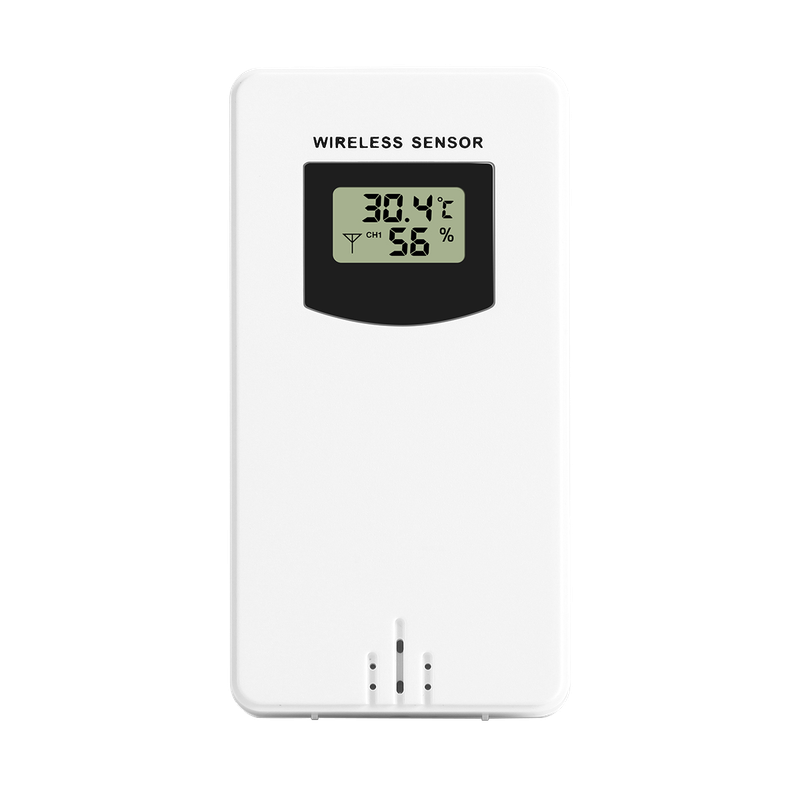 5. Wireless Outdoor Sensor: wall mounted or table stand sensor with 433.92MHz RF transmitting frequency, which has 60 meters transmission range in an open area. Up to 3 wireless outdoor sensors can be connected. (package includes 1 wireless outdoor sensor)