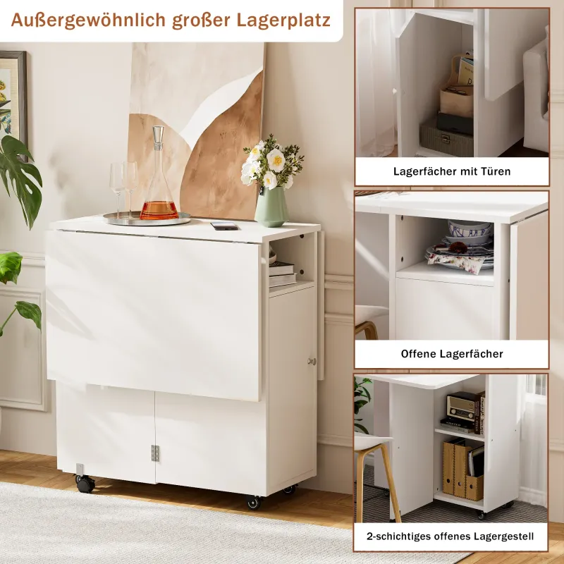 Multifunctional Wooden Retractable and Movable Folding Table With Wheels/Shelves Suitable For Kitchen/Living Room/Small Space