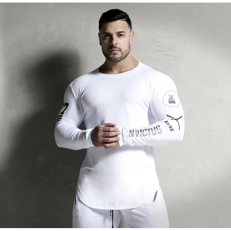 Muscle Fitness Partner Breathable Elastic Wicking Quick-drying Tights Fitness Training Long-sleeved Bottoming Shirt White 2XL