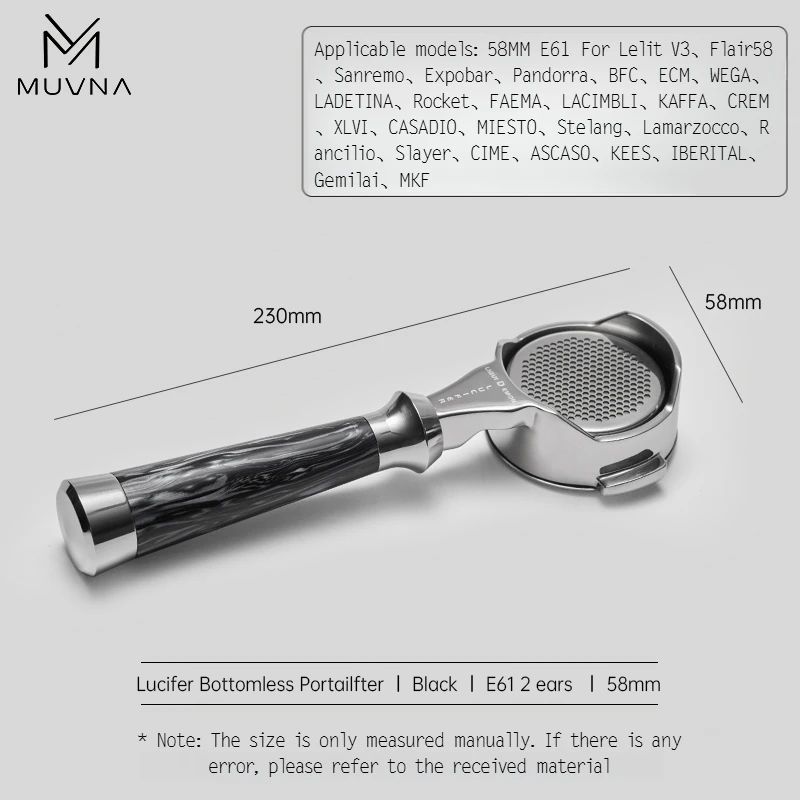 MUVNA Espresso Bottomless Portailfter Lucifer Series, Naked Portafilter with Basket Fits E61/Nuova/Delonghi/Breville Machines