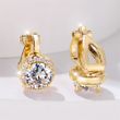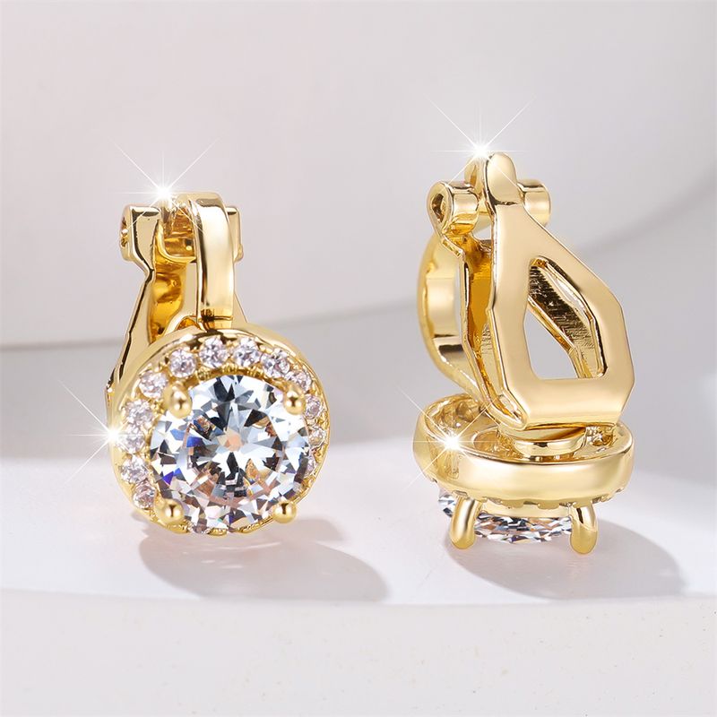 Mystic Rainbow Crystal Round Stone Clip Earrings For Women Rose Gold Silver Color Multicolor Zircon Jewelry Simple Fashion Gifts