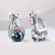 Mystic Rainbow Crystal Round Stone Clip Earrings For Women Rose Gold Silver Color Multicolor Zircon Jewelry Simple Fashion Gifts