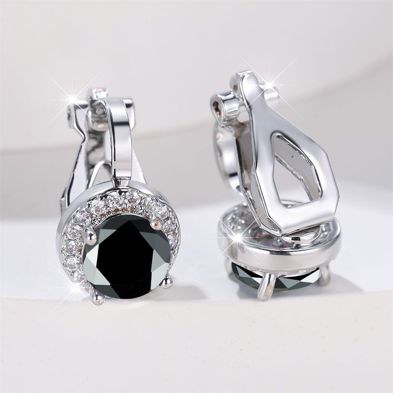 Mystic Rainbow Crystal Round Stone Clip Earrings For Women Rose Gold Silver Color Multicolor Zircon Jewelry Simple Fashion Gifts