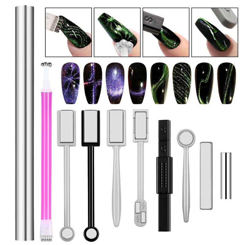 Nail Art Magnetic Stick Wand Pen Kit for 3D Cat Eye Gel Painting Nails Art Magnet Wand UV Gel Polish Magic Manicure Tools