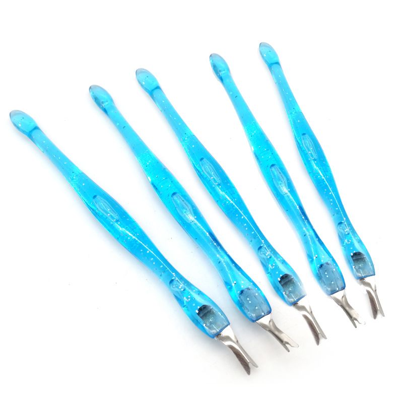 Nail Art Push Repair V-shaped Edge Cutin Dead Skin Knife Blue With Glitter