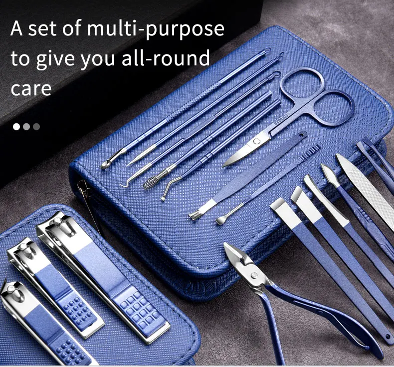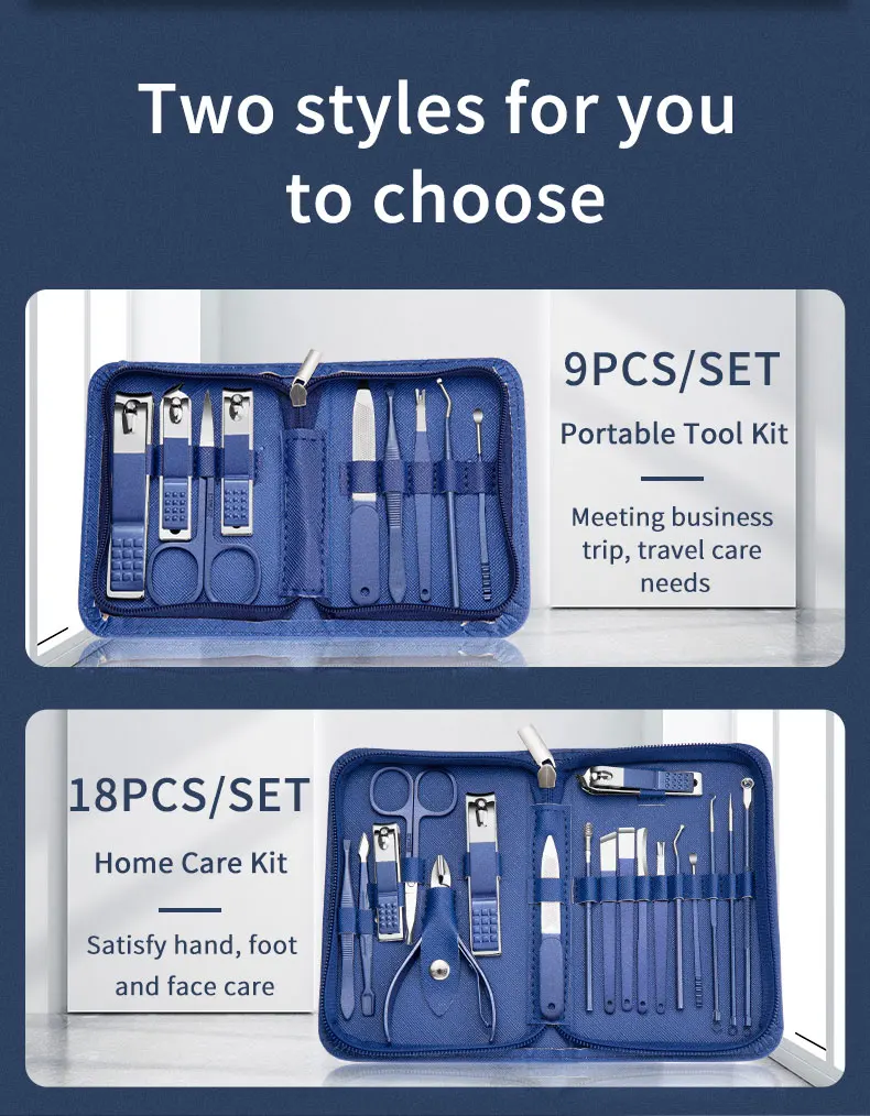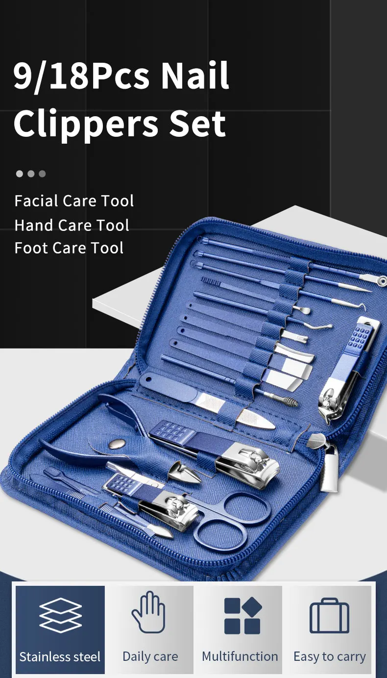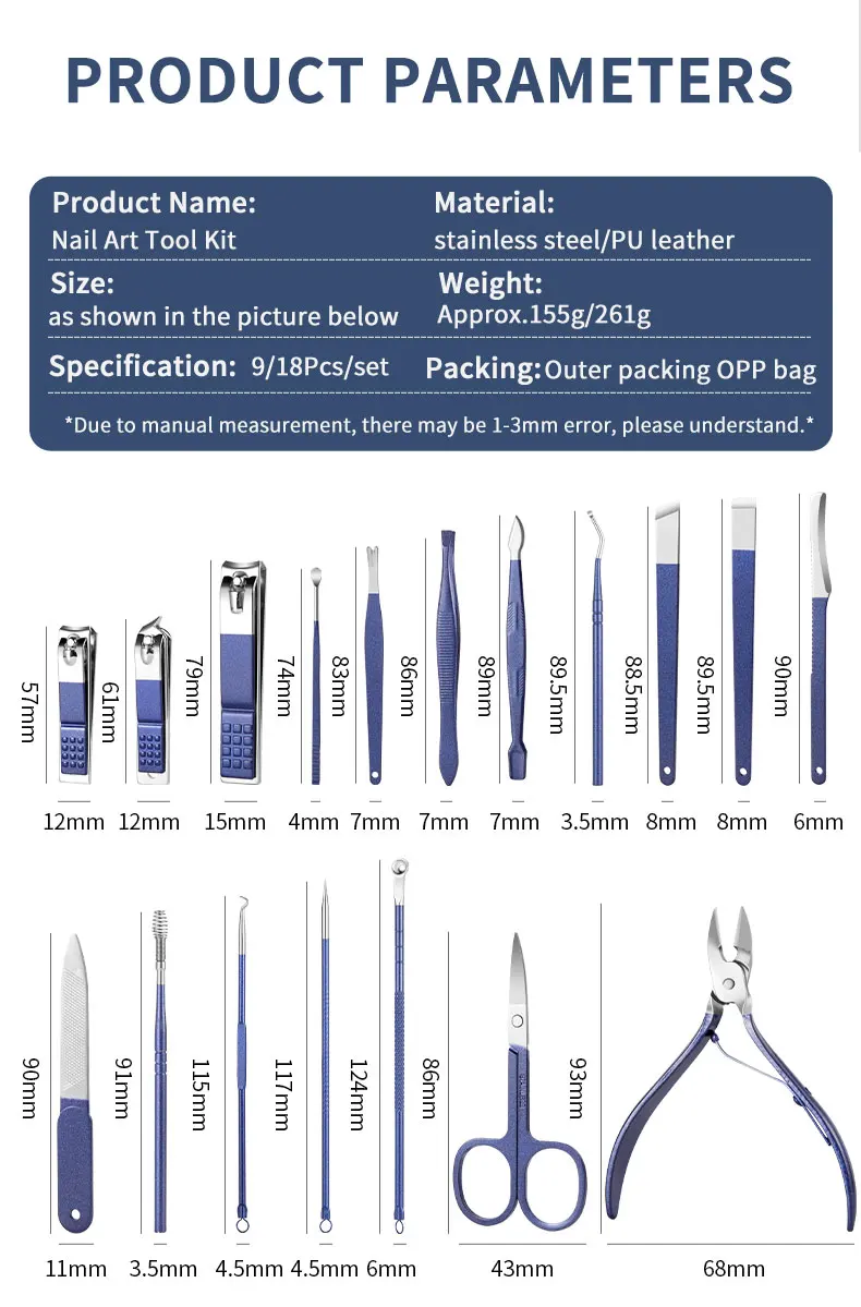 Nail Art Set Nail Clipper Clean Ear Spoon Cuticle Grooming Tool Stainless Steel Cutter Manicure Pedicure Kit 9/18Pcs