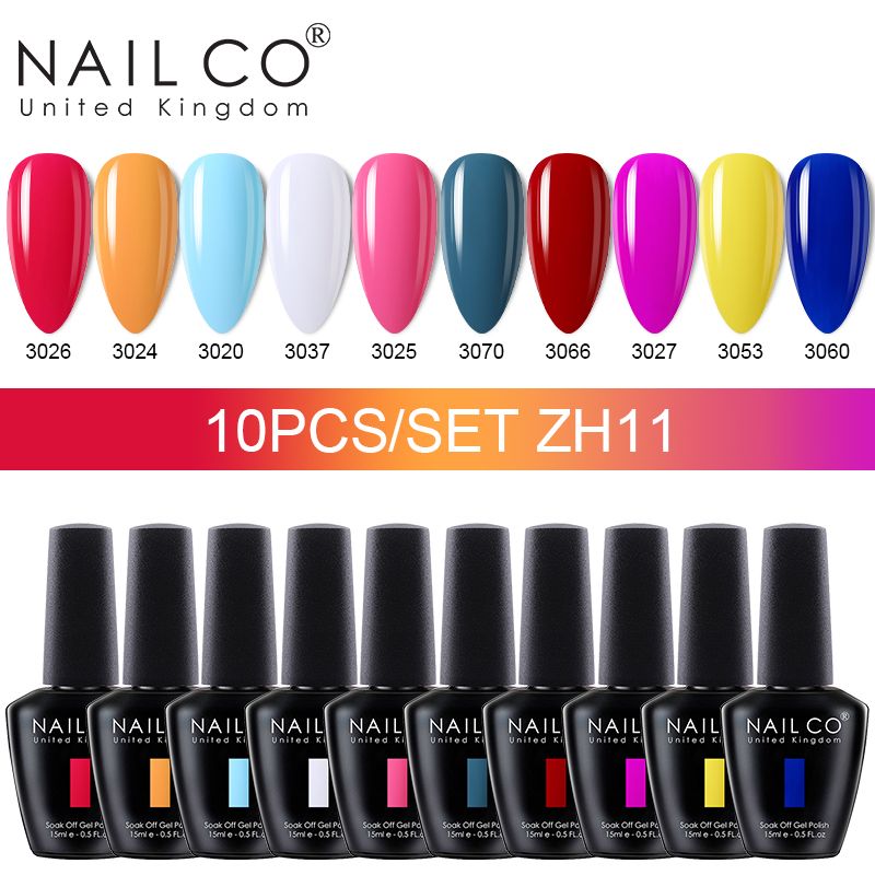NAILCO 15ml 10pcs/Set Nude Colors Gel Nail Polish UV Gel Nail Polish Pink Nail Lakiery Esmalte Top Base Nail Art Design Vernis