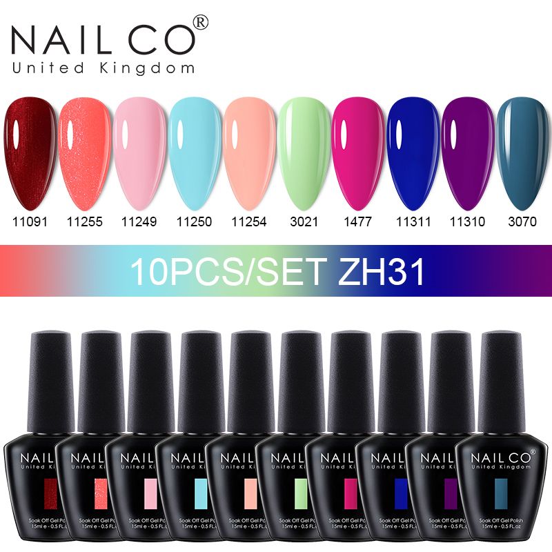 NAILCO 15ml 10pcs/Set Nude Colors Gel Nail Polish UV Gel Nail Polish Pink Nail Lakiery Esmalte Top Base Nail Art Design Vernis