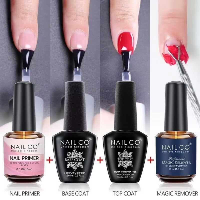 NAILCO 15ml Top Coat Base Coat Gel Nail Primer Gel Remover Nail Art Semi Permanent Lacquer Varnish Hybrid Nail Supplies