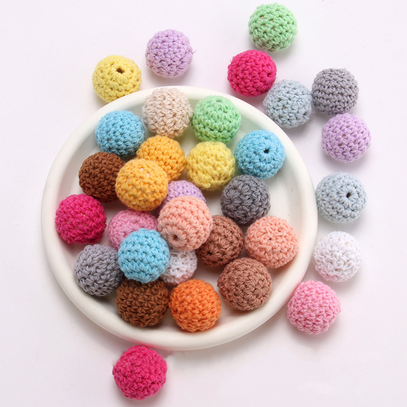 NANA 10pcs Handmade Round Woven Cotton Crochet Wooden Beads Teething Toys Wood Baby Crafts Diy Decorative Accessories 16mm 20mm