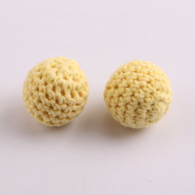 NANA 10pcs Handmade Round Woven Cotton Crochet Wooden Beads Teething Toys Wood Baby Crafts Diy Decorative Accessories 16mm 20mm
