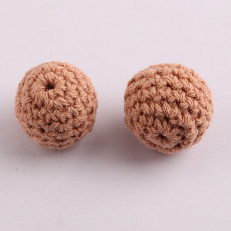 NANA 10pcs Handmade Round Woven Cotton Crochet Wooden Beads Teething Toys Wood Baby Crafts Diy Decorative Accessories 16mm 20mm