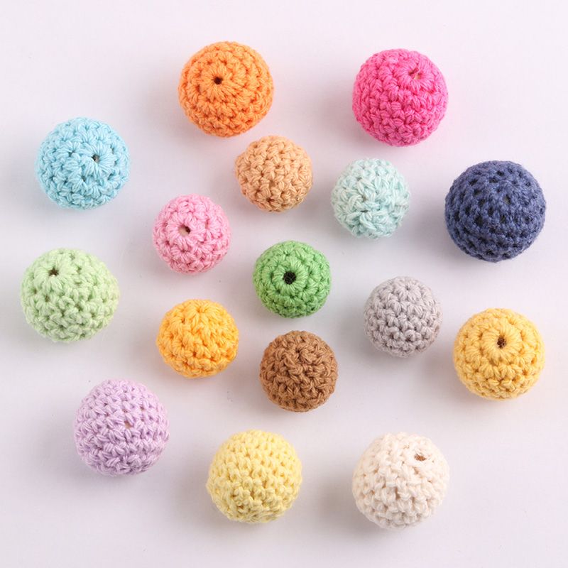 NANA 10pcs Handmade Round Woven Cotton Crochet Wooden Beads Teething Toys Wood Baby Crafts Diy Decorative Accessories 16mm 20mm