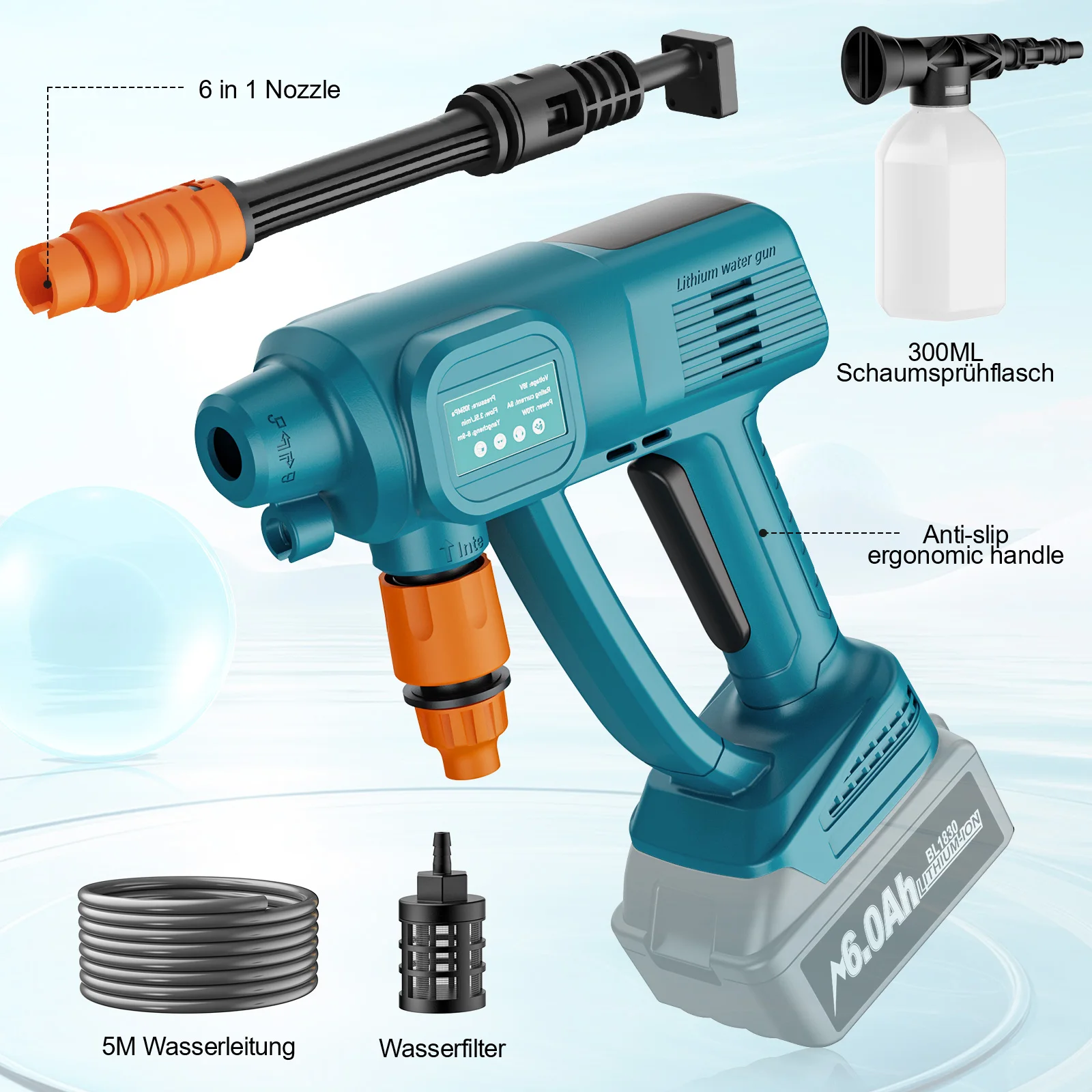 Nananu 60Bar Brushless High Pressure Car Washer Gun With Bucket For Makita 18V Battery Electric Garden Washing Spray Gun