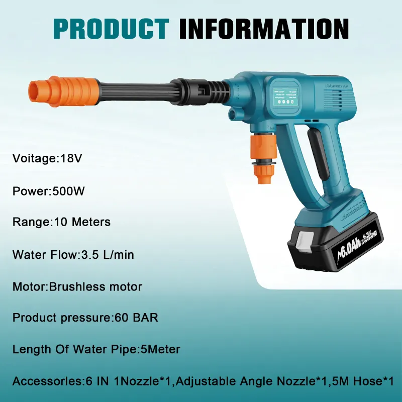 1. Wireless car washing machine, no need to plug in when washing the car, convenient and fast.