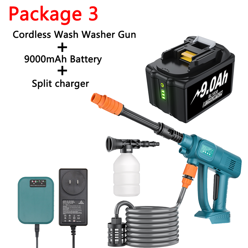 1. Wireless car washing machine, no need to plug in when washing the car, convenient and fast.