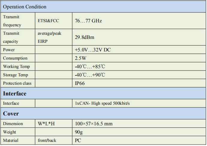 Compared with 24GHz radar, the range resolution of radar is improved up to three times, and better performance for obstacle recognition ability;