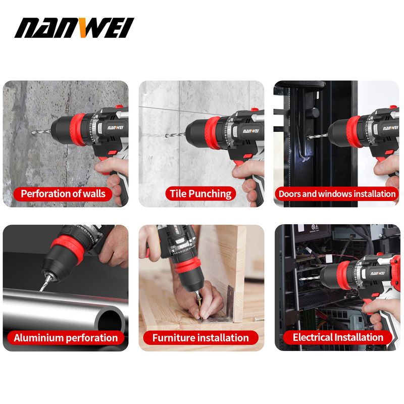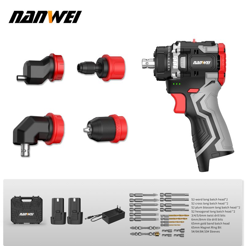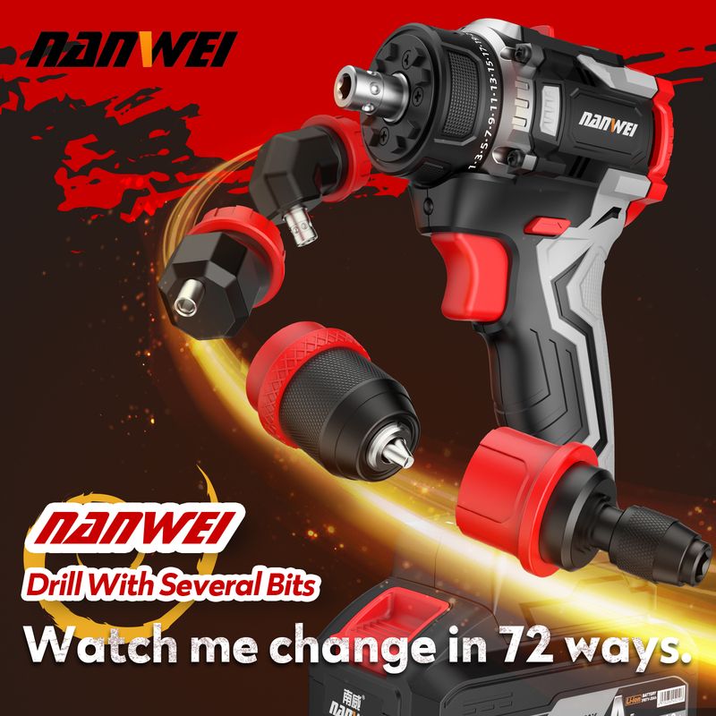 NANWEI 16.8V Cordless Brushless DIY Multi-head Electric Drill Multi-functional Drill with Quick-Change Clip for Home Use