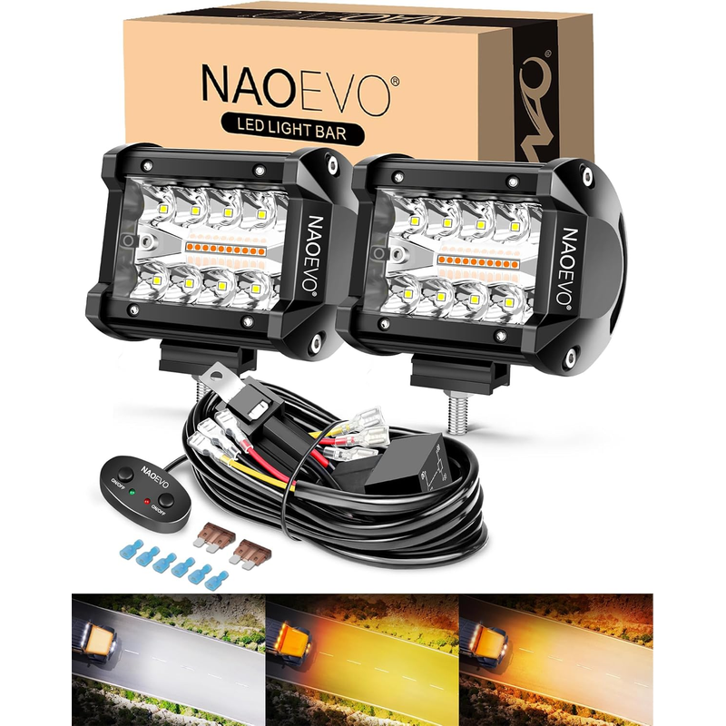 NAOEVO 4inch LED Light Bar, 60W 7200LM Offroad Fog Light Driving Lights LED Pods with Spot Flood Combo Beam, Waterproof Led Work Lights for UTV ATV Jeep Truck Boat, 2 Pieces