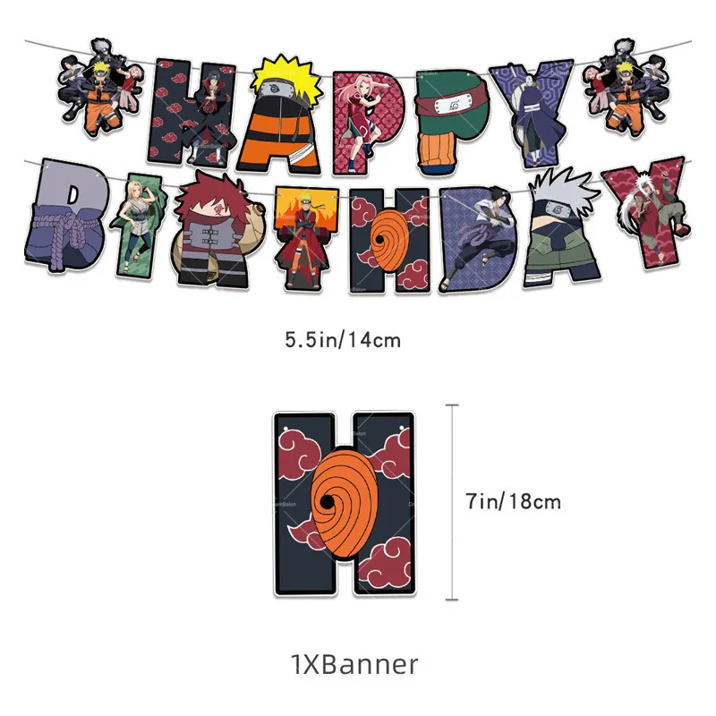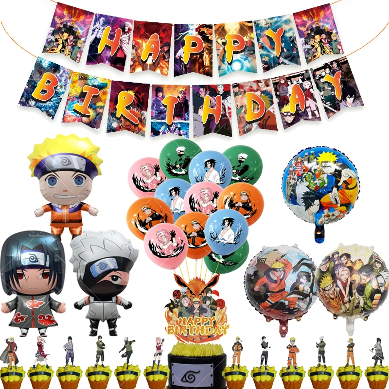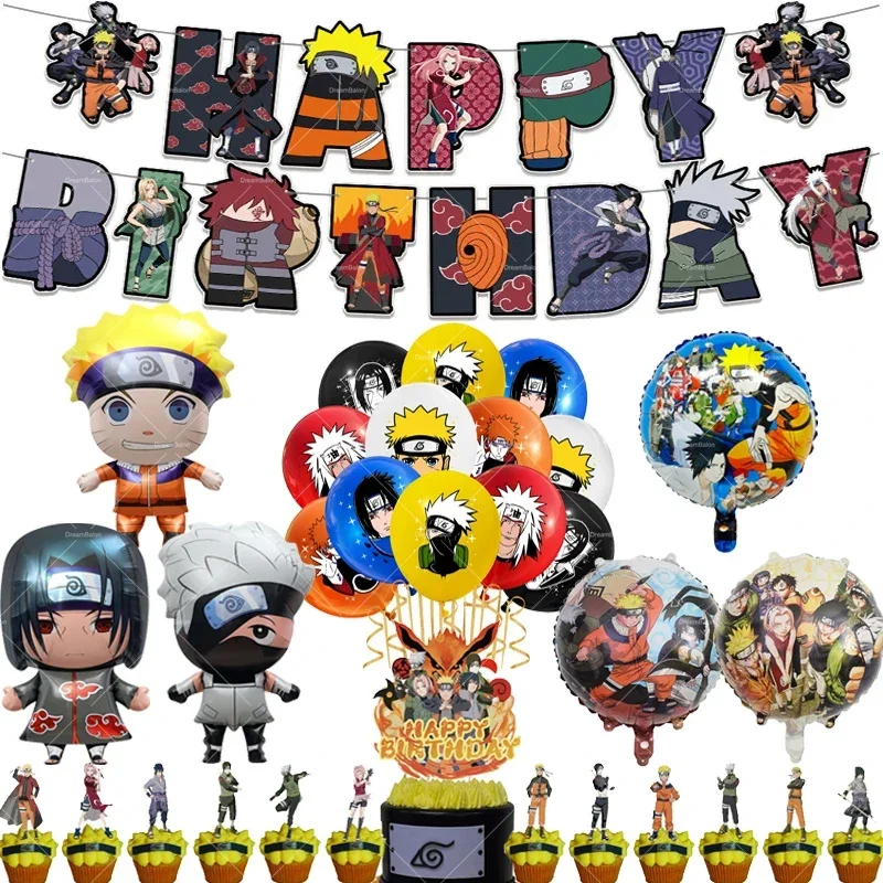 Naruto Kakashi Balloons Uchiha Sasuke Ballons Happy Birthday Banner Party Decoration Kids Anime Cake Topper Disposable Tableware