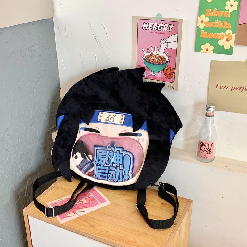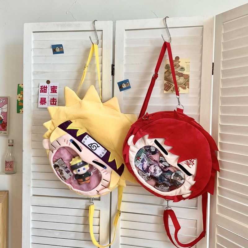Naruto Sasuke Backpack Anime Figure Gaara Itabag High-Capacity Travel Transparent Makeup Storage Bag Doll Toys Kids Gifts