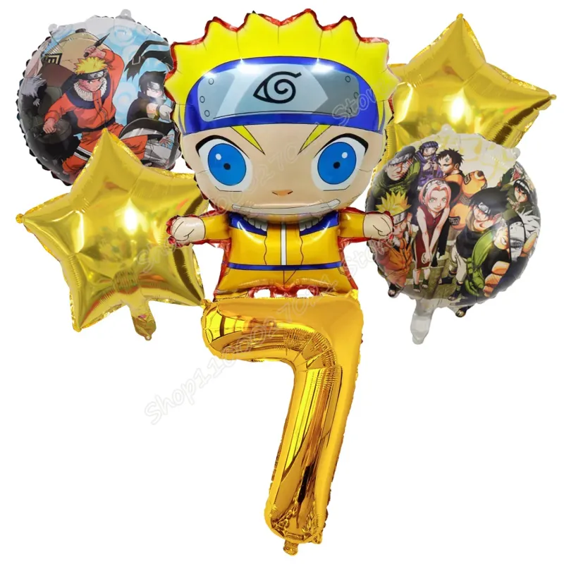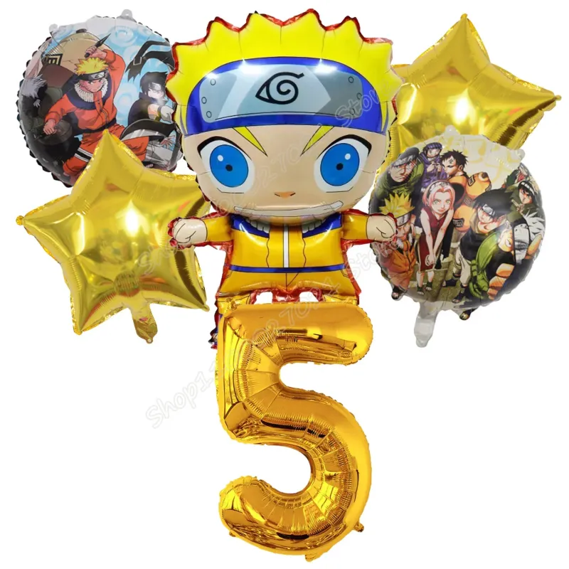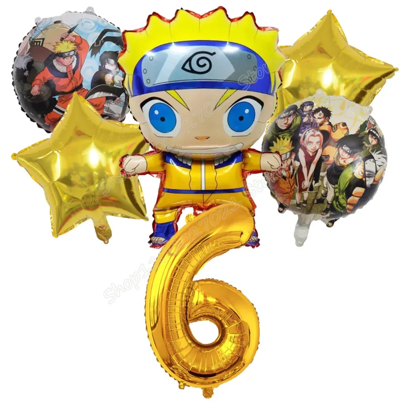 Naruto Uzumaki Birthday Ballon 6pcs Set Decorative Cartoon Anime Aluminum Foil Balloon Number Balloons Party Decoration Kid Gift