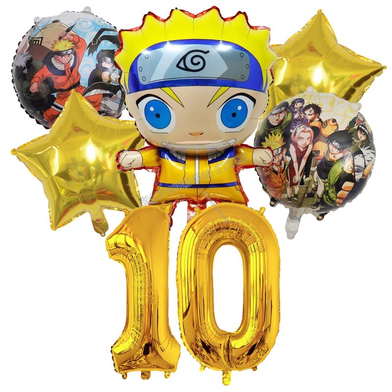 Naruto Uzumaki Birthday Ballon 6pcs Set Decorative Cartoon Anime Aluminum Foil Balloon Number Balloons Party Decoration Kid Gift