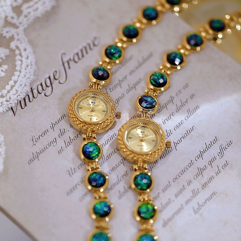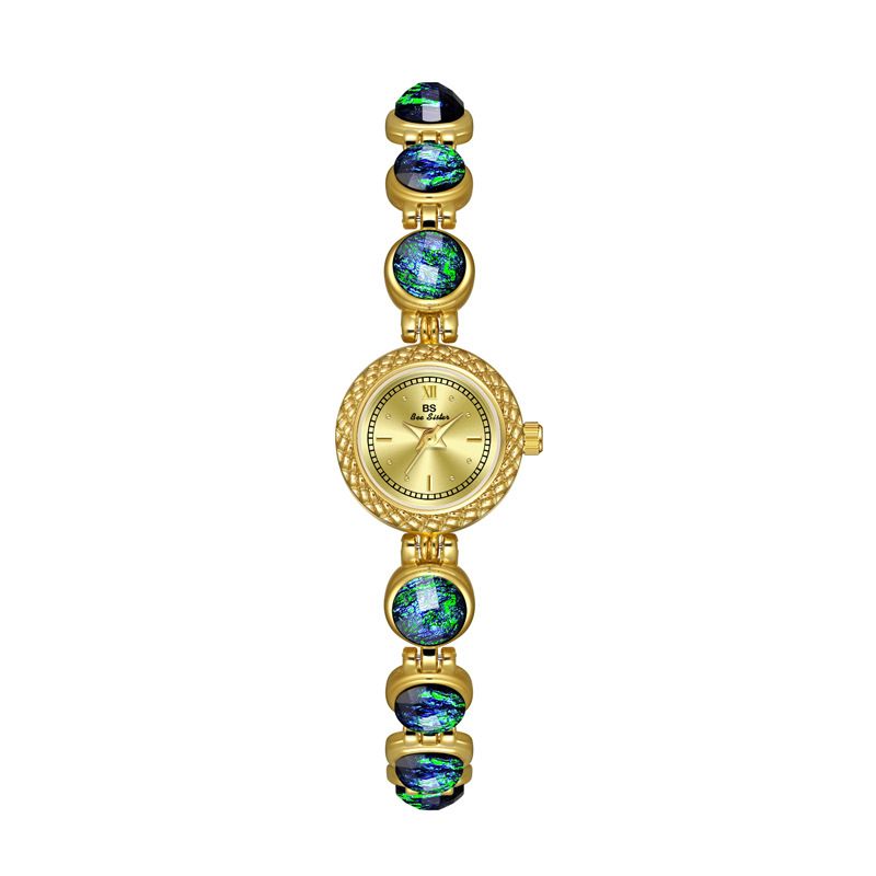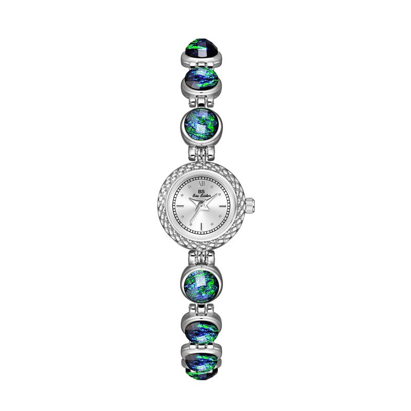 National Style Mid-ancient Light Luxury Malachite Bracelet Watch Silver Malachite