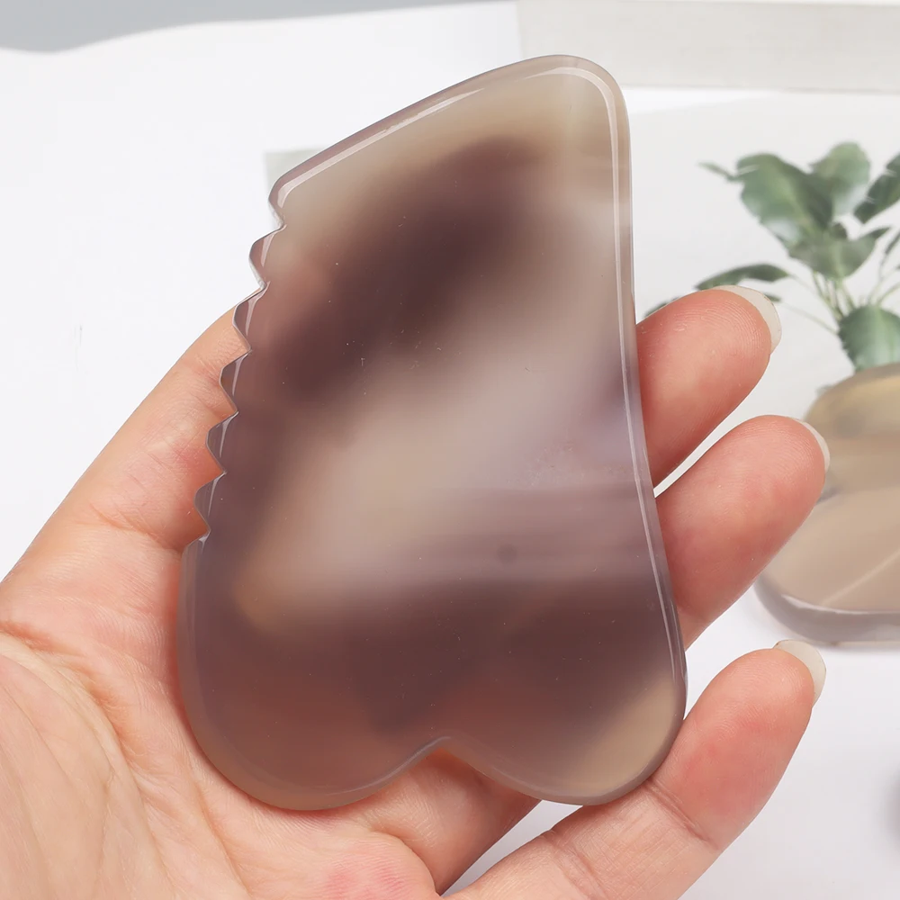 Natural Agate Face Gua Sha Tool Carnelian Crystal Stone Beauty Product Skin Care Sawtooth Massager Neck Body Scraping Board