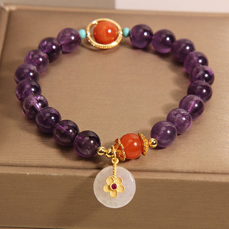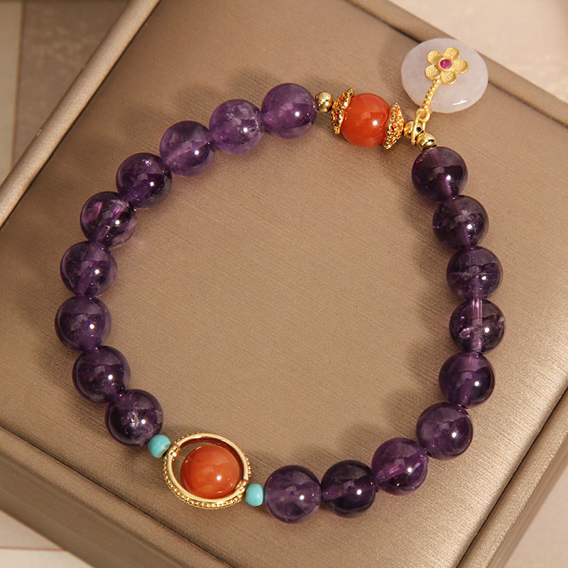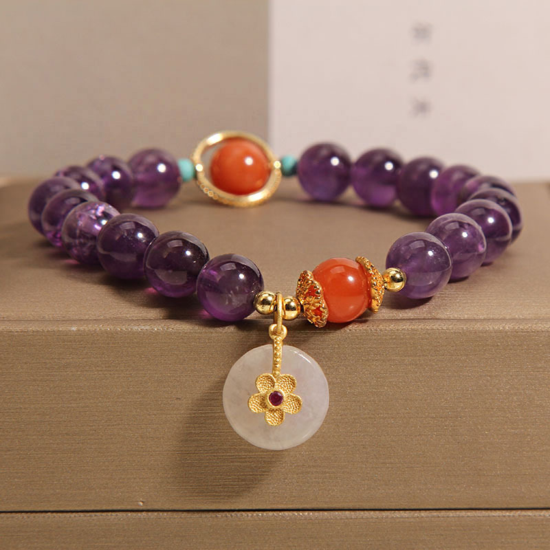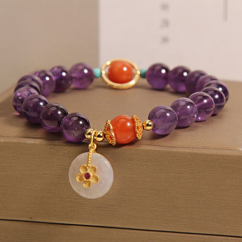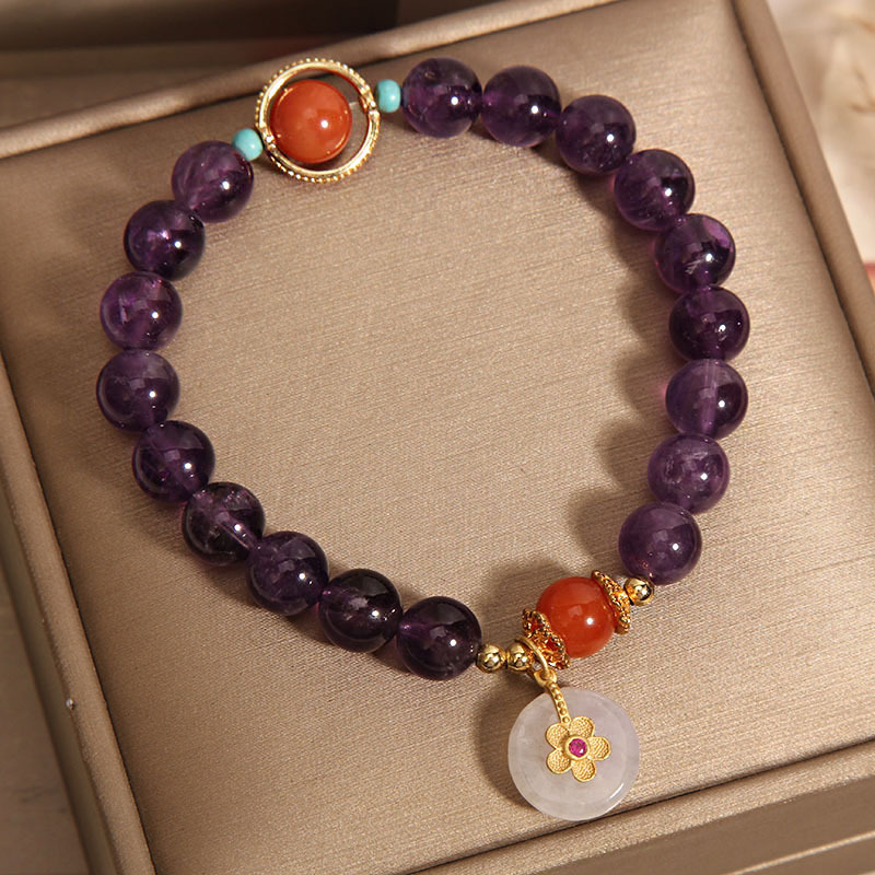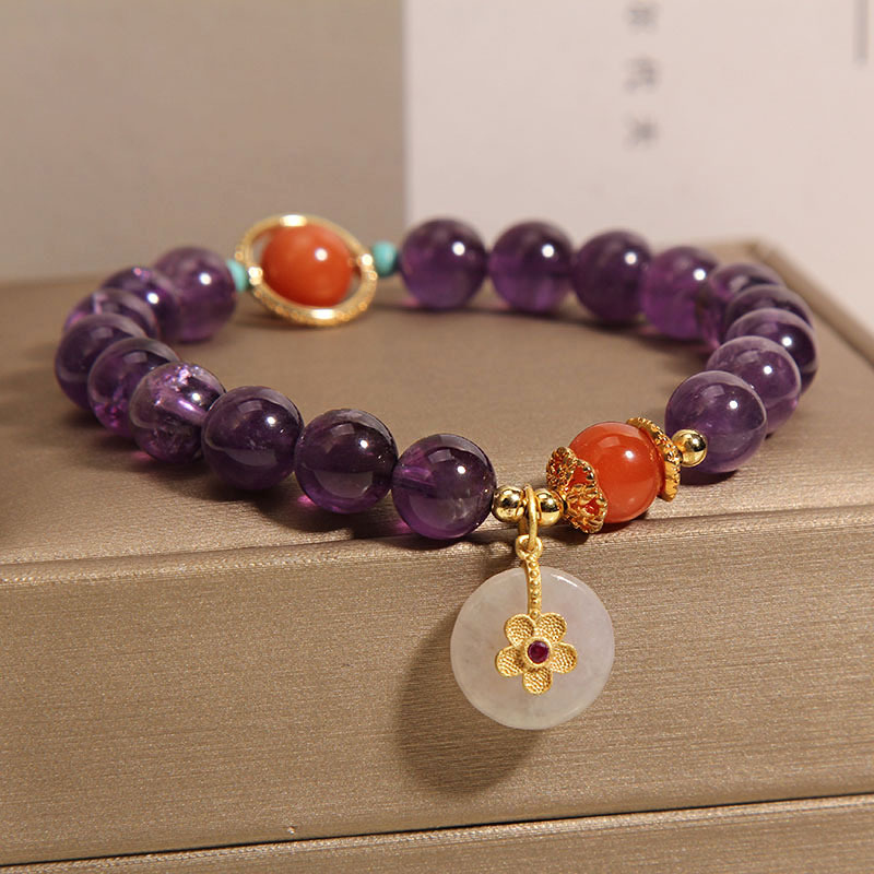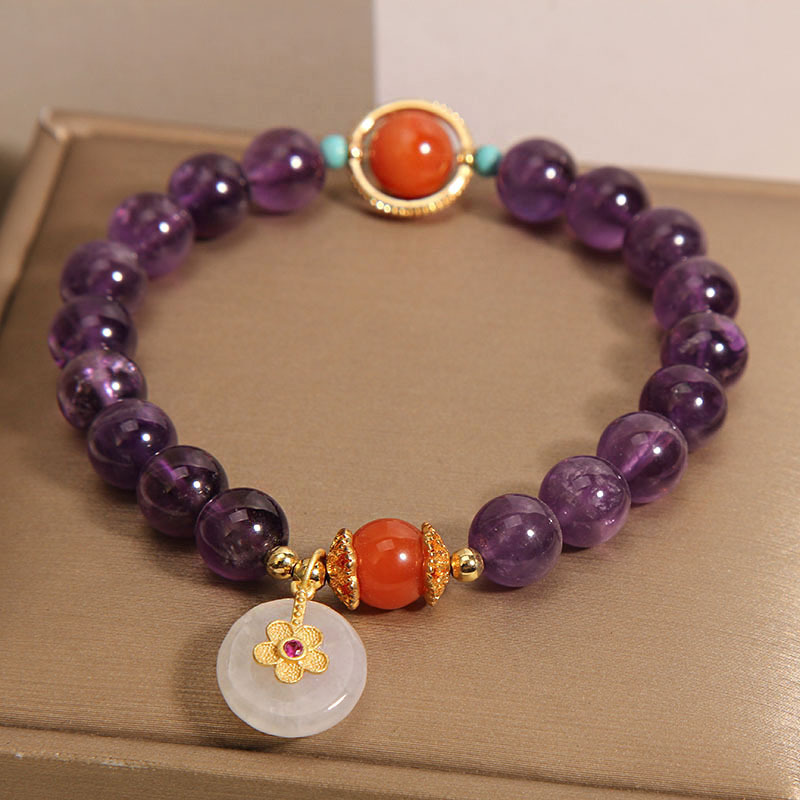 Color: Amethyst Jade safety knot inlaid with small flowers